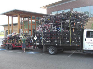 Cindy and Steve VanWambeck, James Santerelli, Loraine Martinez, Dr. Kais Faddah, Bruce Sieger, Randy Dawson and Sheri Newton volunteered use of their pick-up trucks, and drove throughout Seattle and as far north as Everett to collect bikes. Doug and Heidi Hodges donated the use of their backyard for pre-collected donated bikes, and the Trasks had more than 100 bikes in their backyard as well. The Redmond company 2 Men and a Truck offered their services to transport the more than 400 bikes to Sammamish City Hall where they could be loaded into the shipping container for transport to Africa, Trask said.