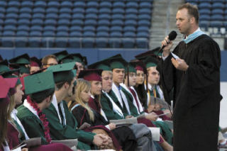 Perhaps no one emphasized the sentiment with more passion than humanities teacher and assistant football coach Don Bartel. Bartel is departing for Enumclaw High School next year to become the Hornets’ new head football coach. He left the class of 2008 with a lasting impression as he crumpled his speech up, stepped off the stage and carried the microphone into the middle of the graduates. Speaking from the heart, Bartel challenged the seniors to look within themselves and to always strive for the best — even if it means disappointing someone else.