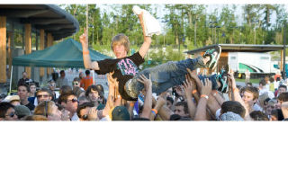 An audience member gets his chance to crowd surf at the Blue Scholars concert during the Sammamish Teen Fest.