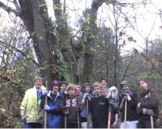 On a recent Saturday, nine boys from Boy Scout Troop 316 held out a hand to the environment by participating in the King County Volunteer Restoration Stewardship Program. The scouts joined other community volunteers on county property — in what is known as the Log Cabin Natural Area along Issaquah Creek — to help improve the environment by planting hundreds of native plants.