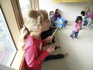 Chloe Young was one youngster to get into the creative spirit at Sponge’s Kites and Cakes event in Issaquah on Saturday. There was kite-making and cake-baking as well. Sponge offers language classes for young children, usually with a colorful, or messy, twist.