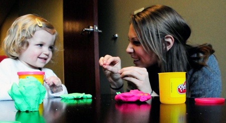 The center works hard to incorporate families into the intervention process, working with parents on every aspect of the therapy. The classrooms have one-way mirror windows which allow parents to watch the classes progress from the outside without distracting the children. In the pre-school the student to therapist ratio is almost one to one, Daniel said.