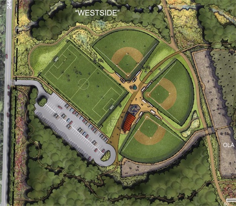 It retains the three existing baseball fields, and introduces one multi-use rectangle field, suitable for soccer and lacrosse.