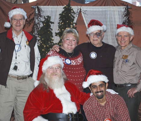 Redmond Rousers Rotary Club members Bob Damon, Kelly Kyle, Russ Newman, Paul Prochaska, Karthik Vasudevan, and Santa, at the Rotary Club’s annual signature event at the Lake Washington Resource Center in Redmond.