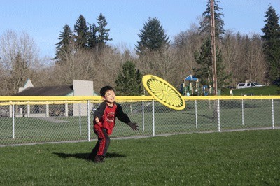 Meanwhile, in a wide, grassy field nearby, nine-year-old Nalu Zou was racing around in lazy circles, trying to catch an oversized yellow and black frisbee thrown by his mother, Lucy.