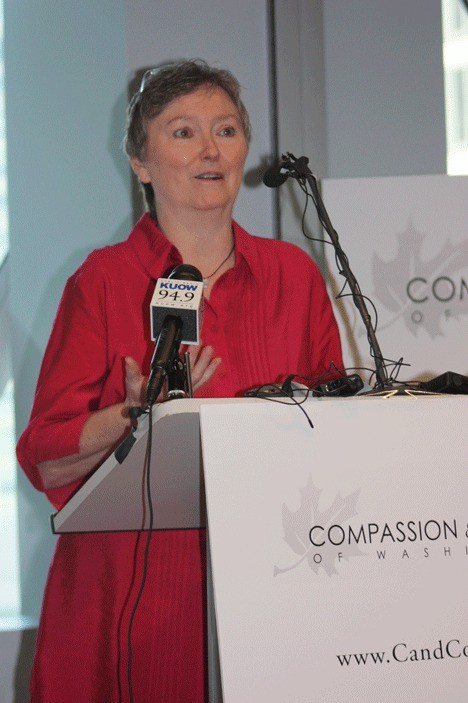 The former hospice nurse appeared alongside representatives speaking on behalf of Compassion & Choices of Washington (CCW), a non-profit advocacy group supporting the Death With Dignity law.