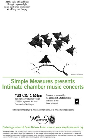 This free concert by the Simple Measures classical chamber music group will be held at Sammamish Presbyterian Church, 22522 NE Inglewood Hill Road, Sammamish. Admission is free, but space is limited.