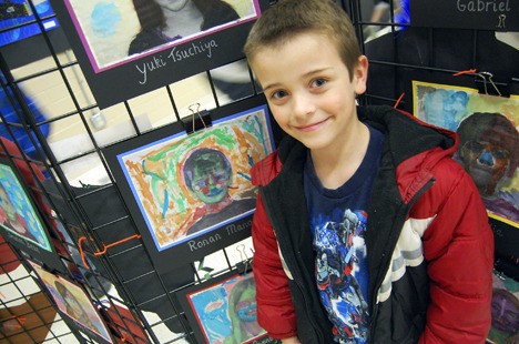 Margaret Mead student Ronan Manoske in front of his self portrait at the school's Art Gallery Night on Thursday.