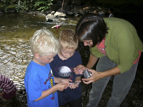 During Little Fry camp, students find out the answers to “Where do salmon live? And who lives near the salmon?” Little Fry campers will explore the salmon hatchery and Issaquah Creek, create an animal track to take home, become a salmon, act like a bug, and sing the songs of water. This camp will encourage the joy of discovery and cultivate a sense of wonder in the environment and in salmon.