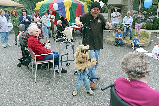 Providence Marianwood resident Barbara Wentz and other residents and family members enjoy watching puppeteer James Blankmeyer of “Strings Attached” entertain guests at Marianwood’s Summer Celebration picnic Aug. 13 at the nonprofit nursing home in Issaquah. The facility celebrated 25 years of serving local residents.