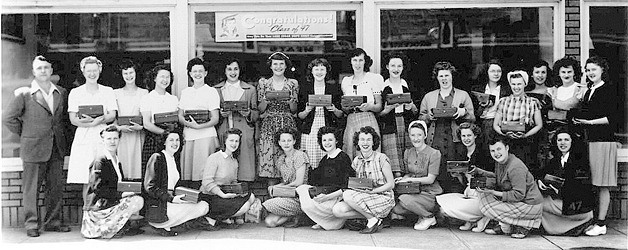 Donna Pedegana Arndt, ’48, remembered fewer than 60 in her graduating class. Graduates in 1956 numbered 80.