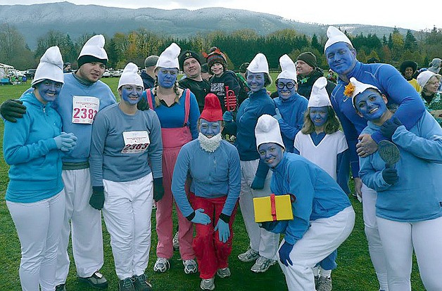 Dr. Donna J. Quinby, DMD, MSD of Eastside Pediatric Dental Group and staff dressed up as The Smurfs to participate in the Winter Pineapple Classic race to benefit the Leukemia and Lymphoma Society. Their team consisted of Quinby, Brandi Hill and her family, Shannon Fillip, Christina Moon, Alisha Fischer, Tara Cummings and husband, Diane Pargeter, and Richelle Spencer along with her husband. The race is held annually at Mountain Meadows Farm in North Bend and consists of 5K run with an obstacle course.