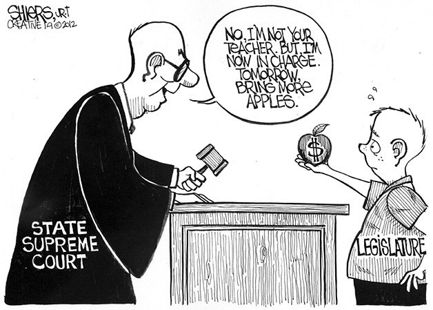That timeframe is bad, but it’s actually worse. The case prompting the Supreme Court ruling was filed in 2007. A coalition of teachers, school districts, community groups and parents argued that the state had not fulfilled its constitutional obligation to fully fund basic education and relied too heavily on local levies to do the job.