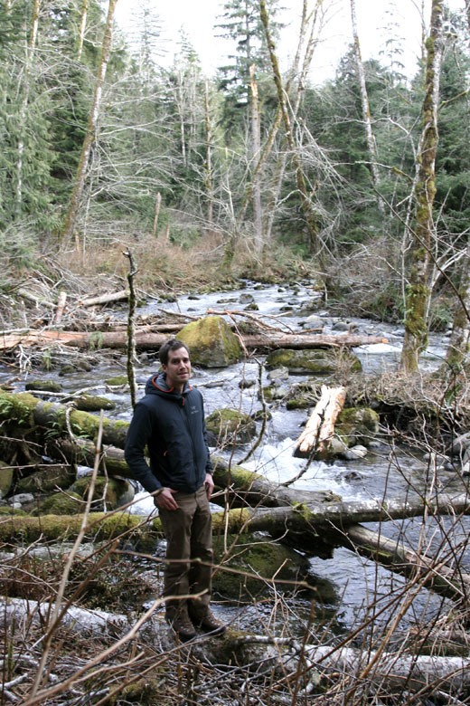 Sam Jarrett, DNR, stands at the edge of the Raging River. The land, recently acquired by DNR, has big recreational potential for multiple user groups. BY CELESTE GRACEY, ISSAQUAH & SAMMAMISH REPORTER