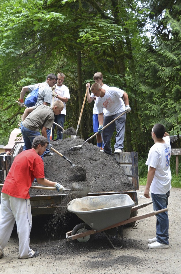 Team members graveled more than 750 feet of trail, stacked wood and cleared brush at a camp many of their mothers remembered attending as youths.