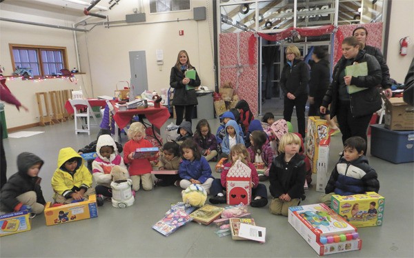 A group of pre-school children from Evergreen Academy brought in over $500 worth of toys that they had picked out themselves. Each child placed their gift very purposefully into boxes for volunteers from the Issaquah Food and Clothing Bank to put on display.