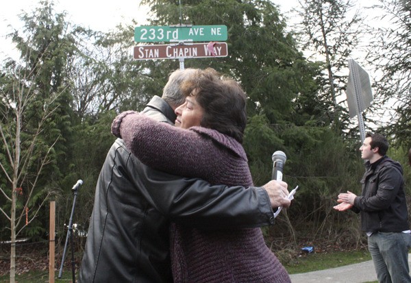 Roughly 200 members of the community — many from Eastlake High School and Inglewood Middle School — showed up to honor the longtime officer as the city officially renamed the new entrance to Eastlake, at the intersection of Northeast Eighth Street and 233rd Ave. N.E., “Stan Chapin Way.”
