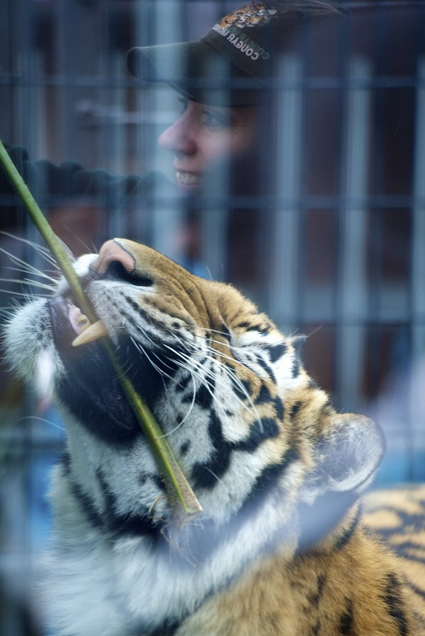 Barfoot has been at the Cougar Mountain Zoo seven years, and in the zoo business for 16. Big cats are her specialty, with tigers her focal point. The zoo has four Bengal tigers, all males, that it got as cubs from other zoos. Vitez and Bagheera, born in 2009, are brothers and share a habitat. Taj and Almos, born in 2007, are three weeks apart in age and grew up together in their habitat. The four can’t be all together or they might get into a fight.
