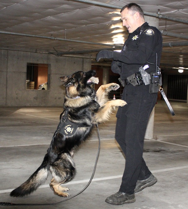 All KCSO handlers and dogs are required to have 400 hours of training. In that time they undergo obedience, tracking and man/bite work. Each handler also brings his dog home with him where it doubles as a family pet.