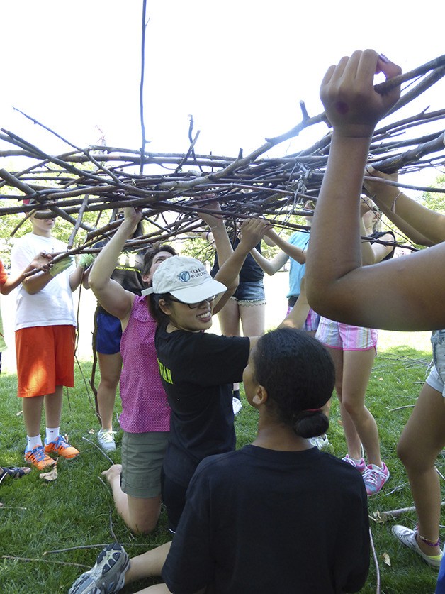 On Monday, environmental artist Karen White, director of the education program for Issaquah’s artEAST, began building human-scale nests with volunteers from the Highlands Youth Advisory Board and other youths in the area. Four of the nests were built and will stay in place to be viewed on Highlands Day, July 20.