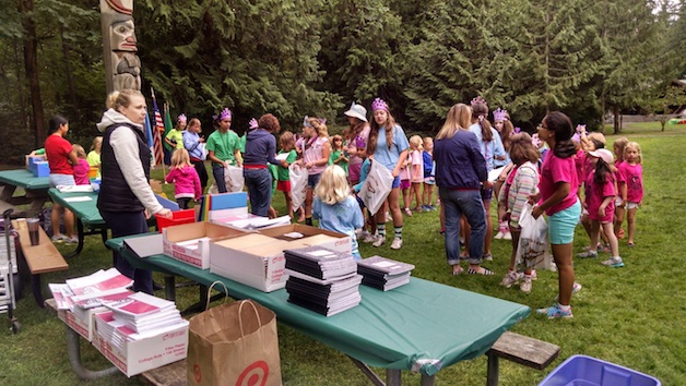 More than 400 local Girl Scouts attending Girl Scout Sammamish Day Camp supported their sisters around the world by completing five community service projects during the week-long camp Aug. 4 -8 at Beaver Lake Park in Sammamish.