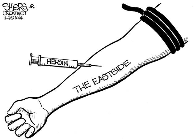 This week’s editorial cartoon laments the problem of heroin use on the Eastside.
