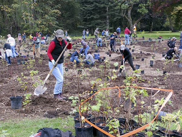 Hundreds came out to Confluence Park on Saturday, Oct. 24, to plant native trees along the shoreline of a rerouted Issaquah Creek.