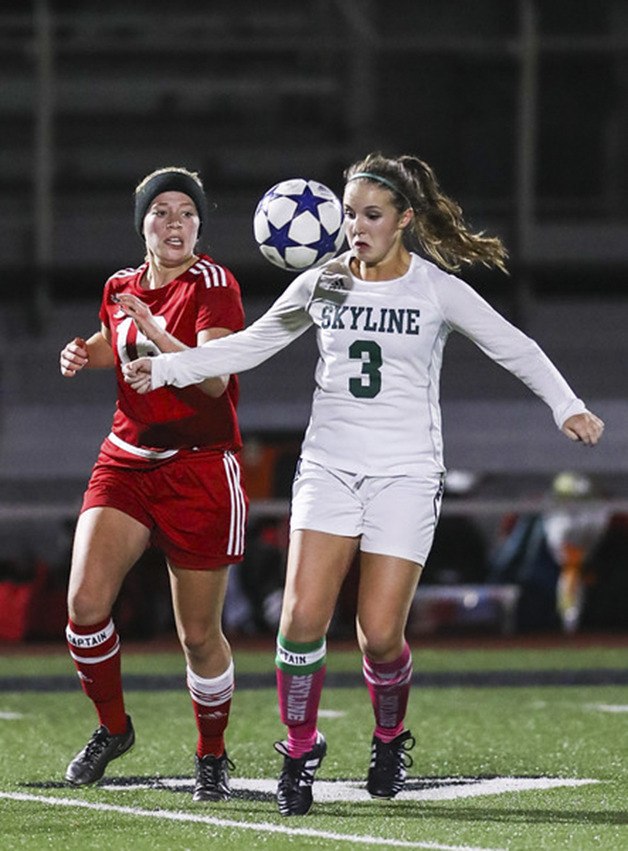 The Spartans scored five-first half goals en route to a convincing 8-0 victory against the Newport Knights in a Class 4A KingCo matchup on Oct. 20 at Skyline High School in Sammamish. The Spartans improved their overall record to 11-0-3 with the win. Newport dropped to 2-12-1 overall. The Spartans are currently in first place in the Class 4A KingCo Division. The Spartans quartet of seniors consisting of Candace Hunter, Alexa Kirton, Olivia Bowen and Cameron Tingey made their presences felt in the home finale. Hunter scored a game-high three goals, Tingey added two goals in the first half, Bowen had two assists and Kirton finished with two assists and recorded the final goal of the night in the 72nd minute of play. Junior Ava Giovanola, who takes the bulk of Skyline’s corner-kicks, had two assists as well. Skyline head coach Don Braman was thrilled to see the Spartans seniors dominate the action against Newport.