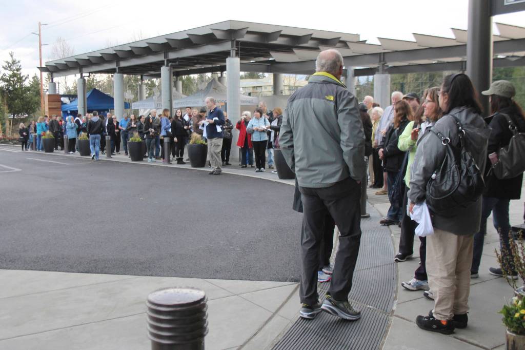 With a line stretching from the store’s entrance to across the parking lot and around the corner down 228th, eager community members awaited for their first look inside the new grocery store, which will anchor the city’s developing Town Center.