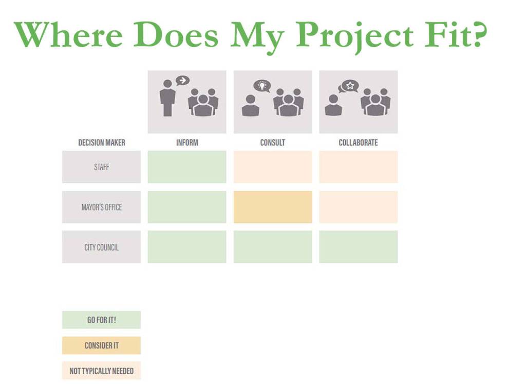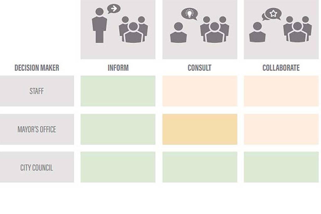 Engagement is most needed when City Council is making a decision, Monahan explained, and usually least needed when city staff are the primary decision-makers.