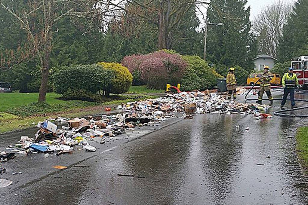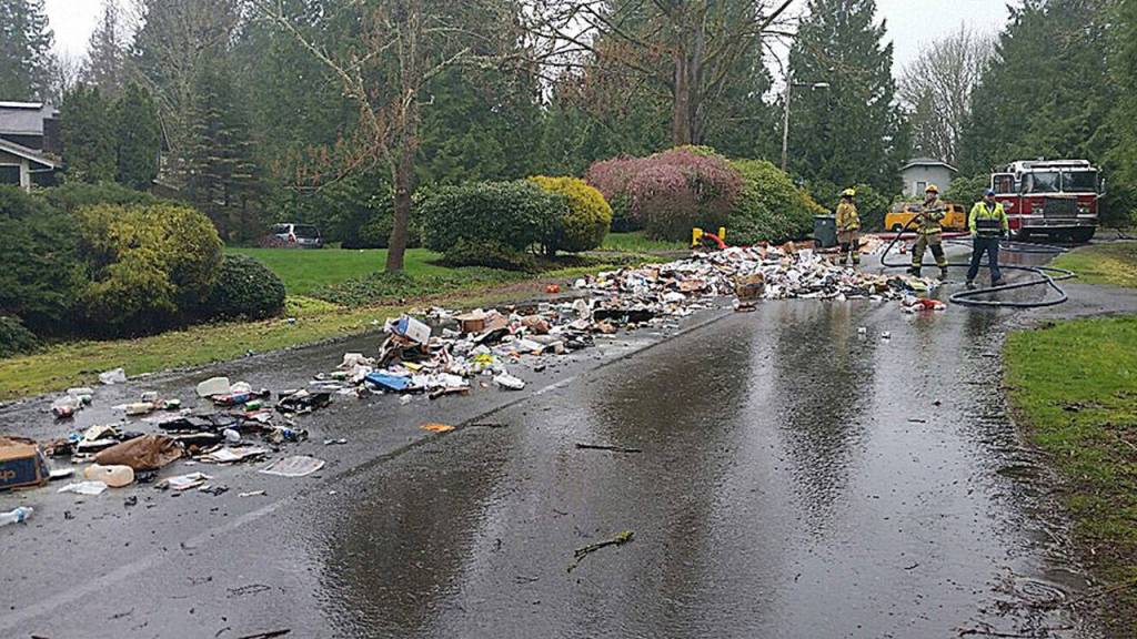 Sammamish police reported that a driver with Republic Services noticed smoke billowing from the rear of the truck while driving his route. To help disperse the fire, the driver dumped his load on to the roadway, approximately near the corner of Southeast 23rd Street and 200th Avenue Southeast, and called 911 to report the issue. The Sammamish Police Department and Eastside Fire and Rescue responded to the scene, as did a supervisor with Republic Services.