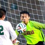 The Skyline Spartans earned a 2-0 win against the Issaquah Eagles on April 18 in a battle between rival schools. Skyline improved its overall record to 7-3-2 with the win. Issaquah dropped to 5-4-3 overall. Skyline player Shingo Terada, left, puts pressure on Issaquah goalie Cameron Oen, middle, during the matchup at Skyline High School in Sammamish.