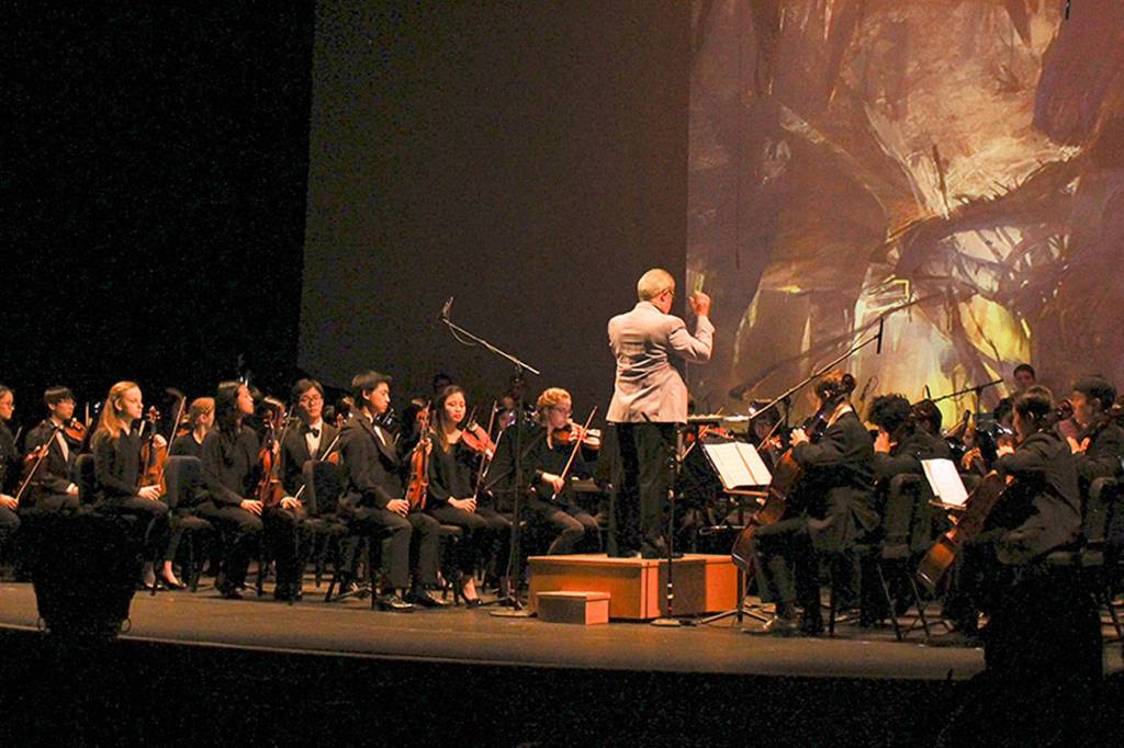 The Evergreen Philharmonic Orchestra, which is made up of Issaquah School District students, performed a concert playing Diemer’s music from the standout video game “Guild Wars 2” at Issaquah High School on March 29.