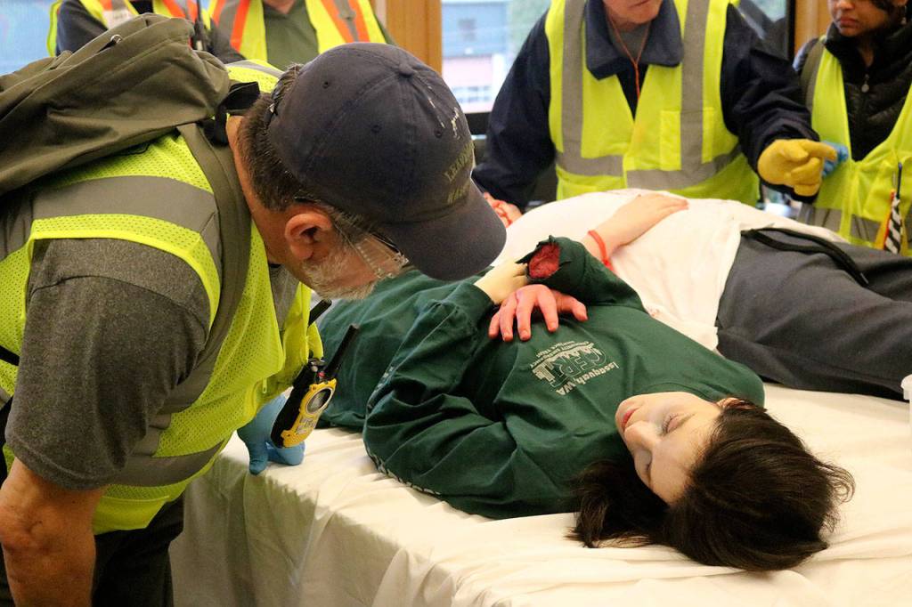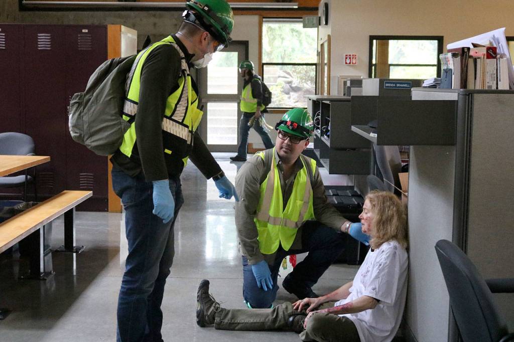 This was the scene during the Issaquah Community Emergency Response Team’s disaster simulation, held at the city of Issaquah Public Works building on Saturday.