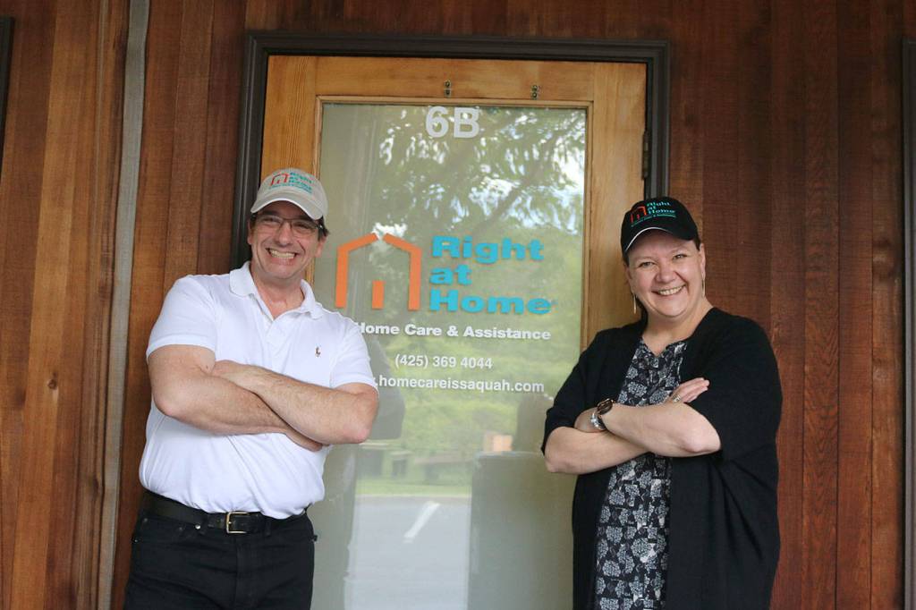 This month, Issaquah couple Richard Smith and Justyn Scarbeau are opening a local franchise of Right at Home, an international agency that provides care for elderly patients so that they can avoid moving out of their homes for as long as possible.