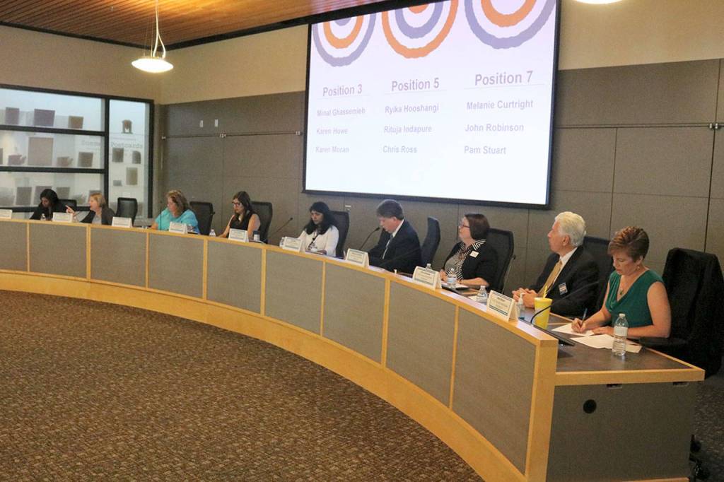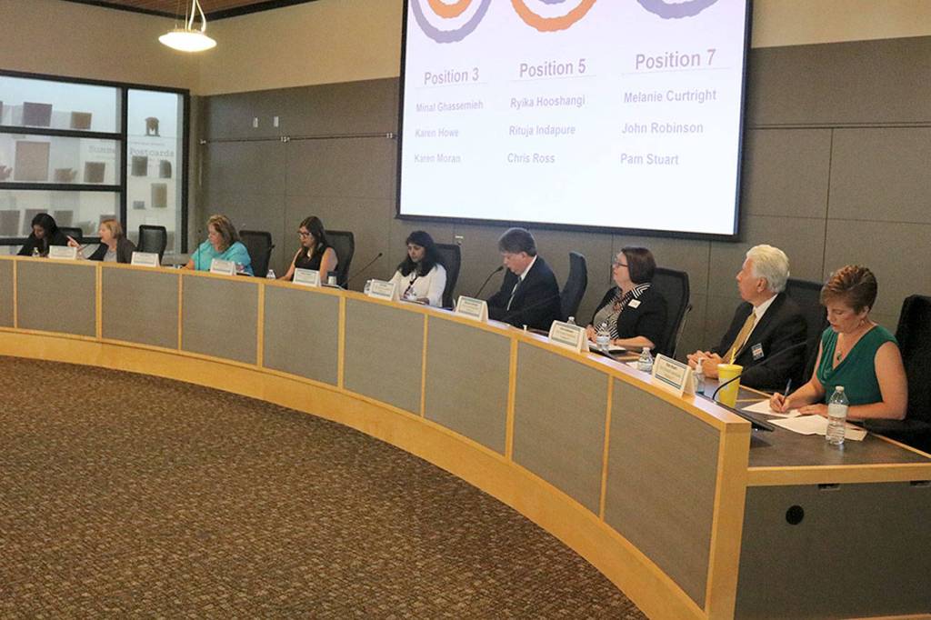 Program and project management consultant Melanie Curtright, retired businessman John Robinson and senior program manager Pam Stuart have registered for the Position 7 seat. Roger Chapanis recently dropped out of the race due to health reasons, but his name will still appear on the ballot.
