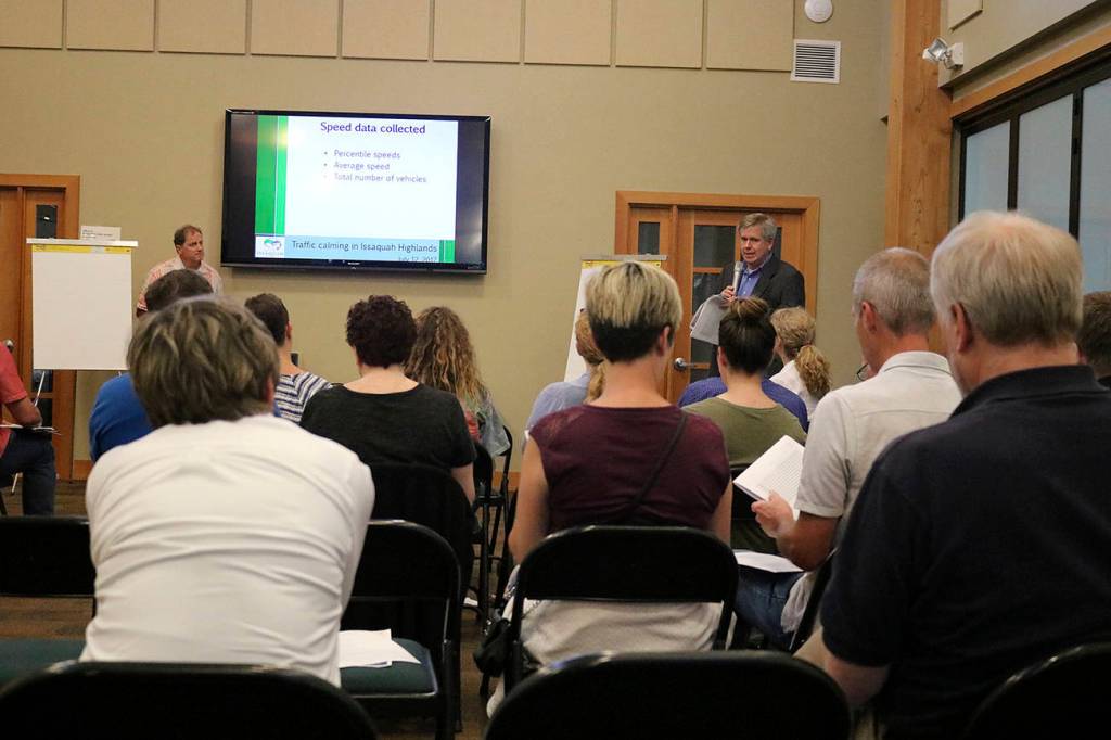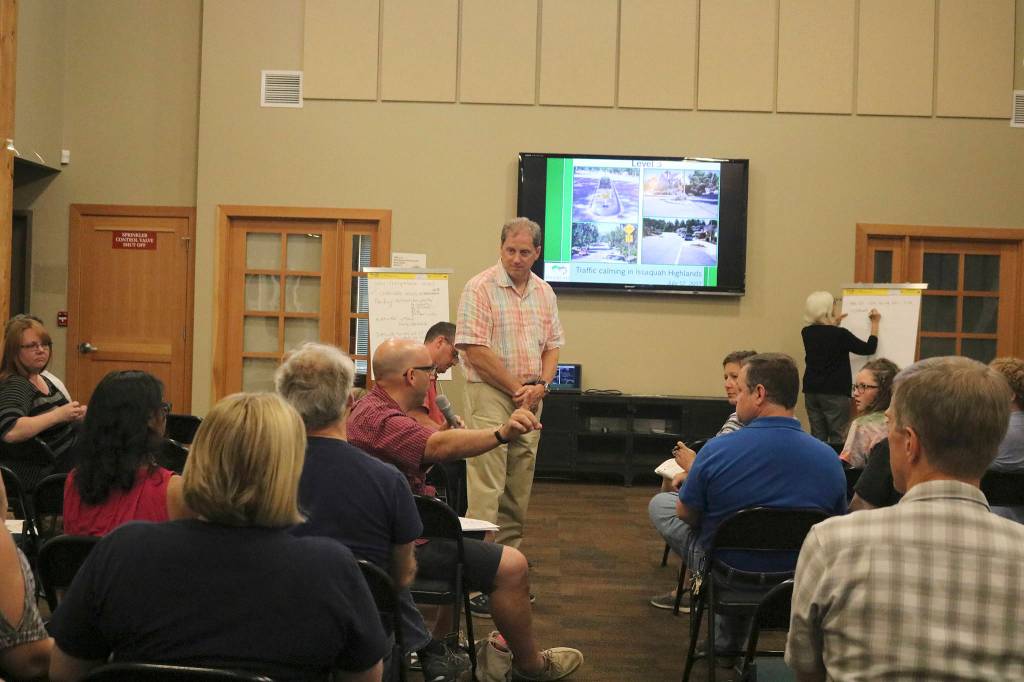 Resident Doug Anter, whose young daughters were in attendance with him at the meeting, said that every night from his bedroom window, he can hear a “drag race” outdoors in the street. The streets have gotten so dangerous, he said, that he and his wife have considered moving away from Issaquah just to keep their children safe.