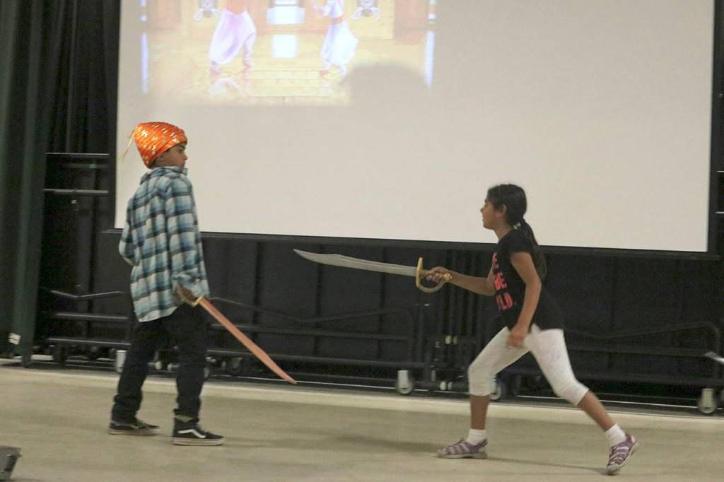 In the span of one week, kids learned and performed a play about the Indian king Shivaji Bhonsle, complete with sword fights, authentic costume pieces from India and even a Bollywood dance number. Pictured here is the July 21 rehearsal, one day before show time. Nicole Jennings/staff photo