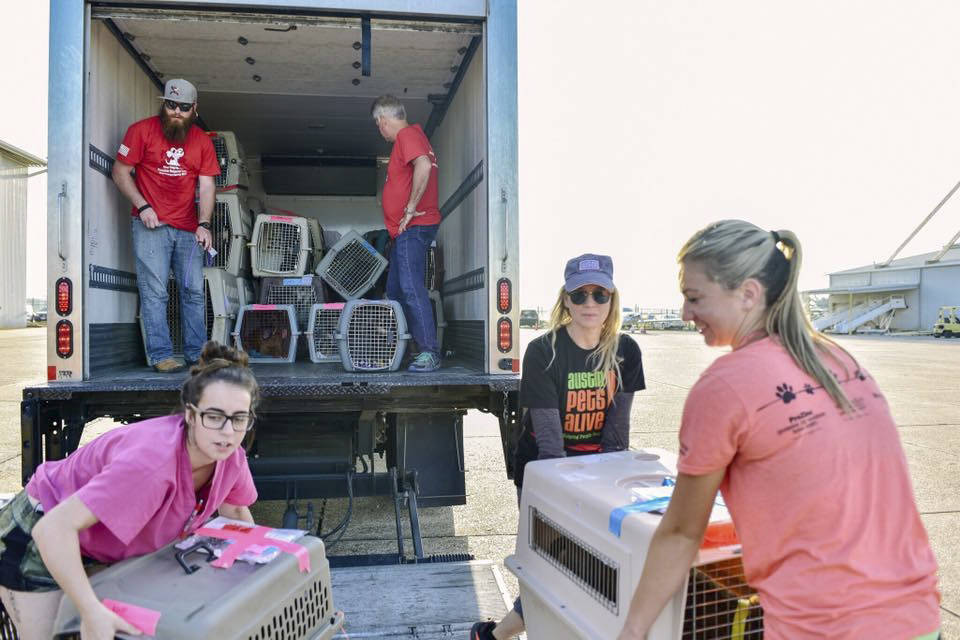 “The whole thing was run with just volunteers, hundreds every day, we had a food tent, we had a trailer full of dog food, we had medical staff,” she said. “Austin Pets Alive, they were running the show, and we had people doing intake and owner surrenders; other shelters were flooded so animals were coming to us constantly, we were in-taking and then sending them out.”