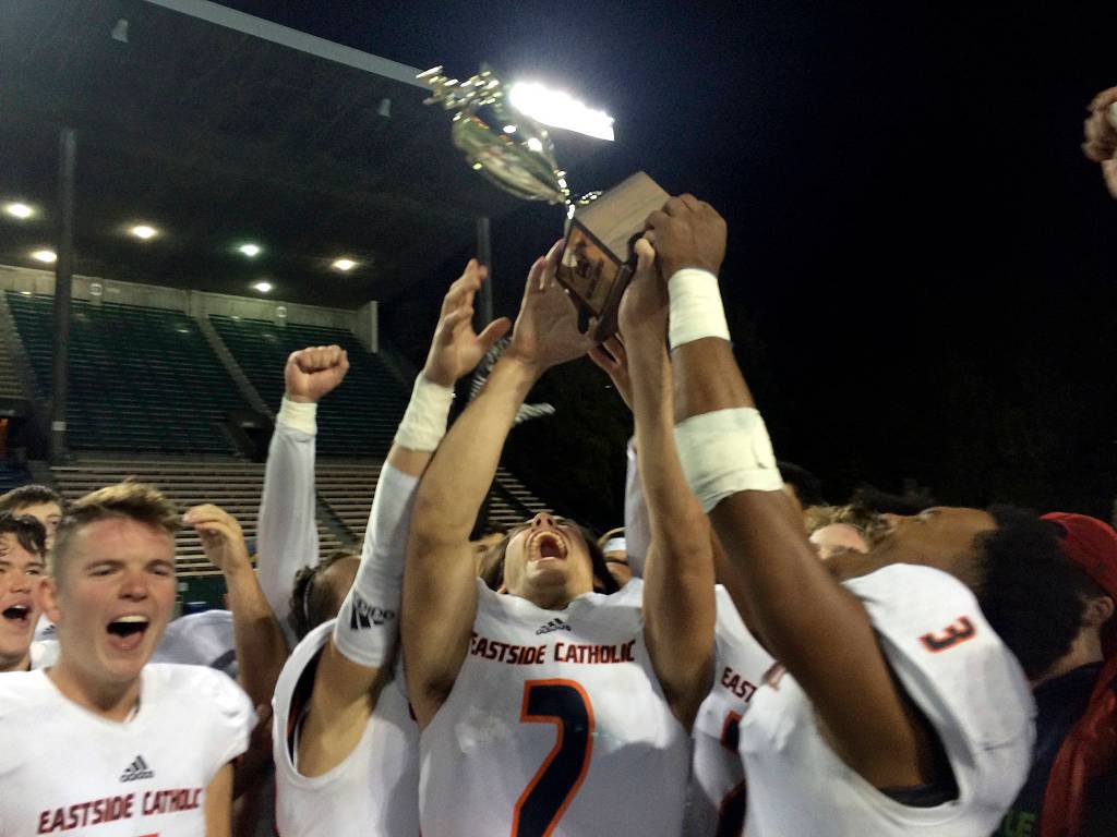 When it was all over the Eastside Catholic Crusaders football team hoisted the Class 3A Metro League championship trophy for an unforgettable celebration.