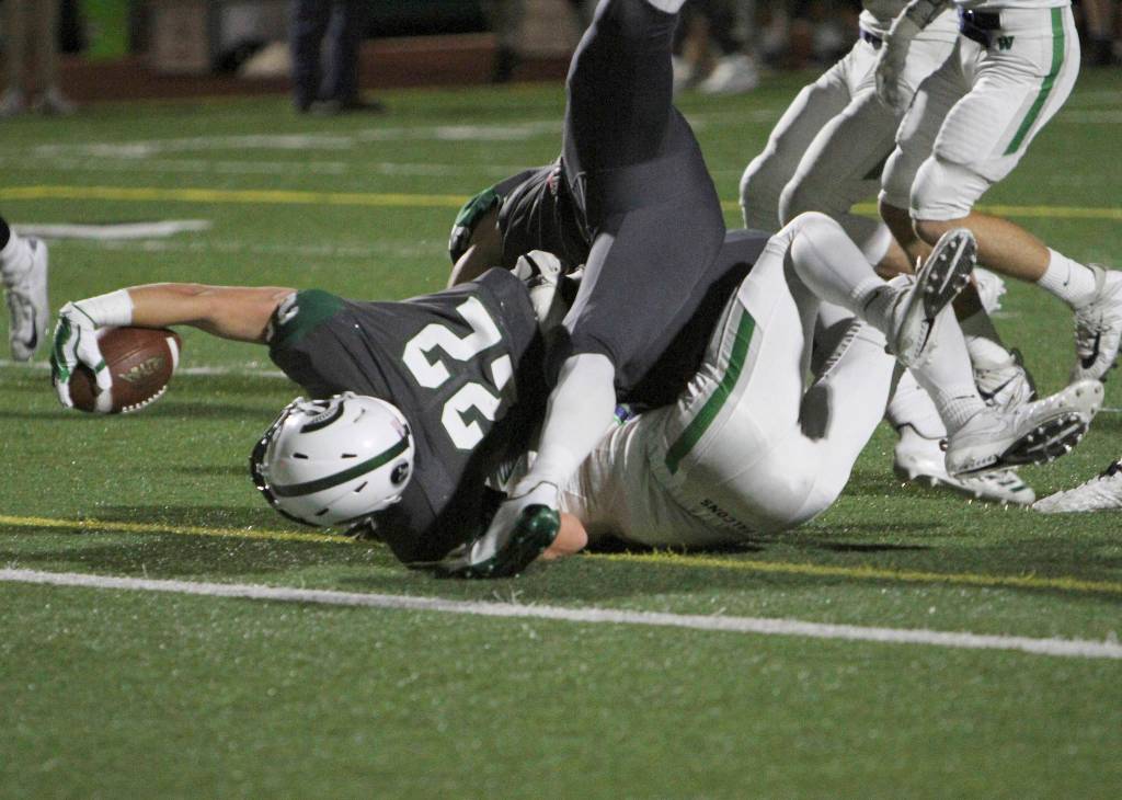 The Woodinville Falcons defeated the Skyline Spartans 38-20 in a Class 4A KingCo football contest on Oct. 20. Skyline, who had a four-game winning streak coming into the contest, dropped to 5-3 overall with the loss. Skyline receiver Nathan Brandt (pictured) dove for the endzone against the Falcons on Oct. 20. The Spartans will face the Issaquah Eagles in the 2017 regular season finale at 7 p.m. on Oct. 27 at Gary Moore Stadium in Issaquah.