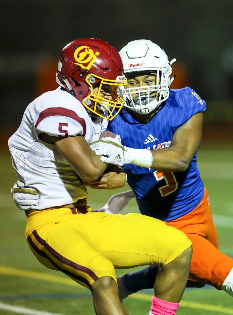 The last line of defense for the Eastside Catholic Crusaders football team packs a powerful punch.