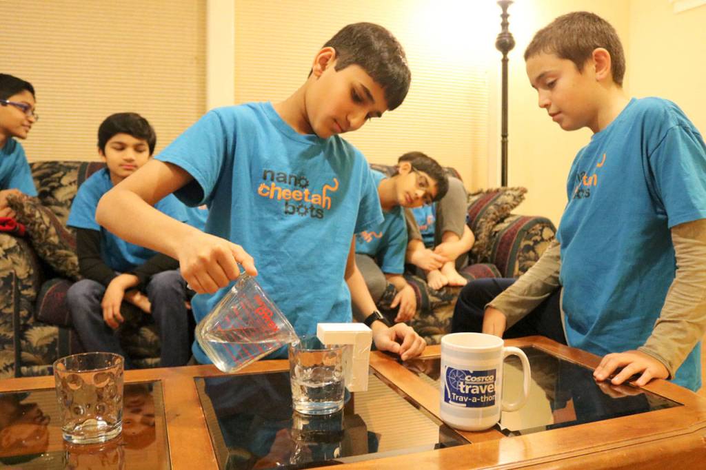 The Nano Cheetah Bots are a group of seven fifth-grade boys from Samantha Smith Elementary who have formed a robotics and engineering club to take part in the FIRST Lego League season. Their project for the state event is a device that helps blind people with filling up a glass without pouring in too much and spilling their drink.