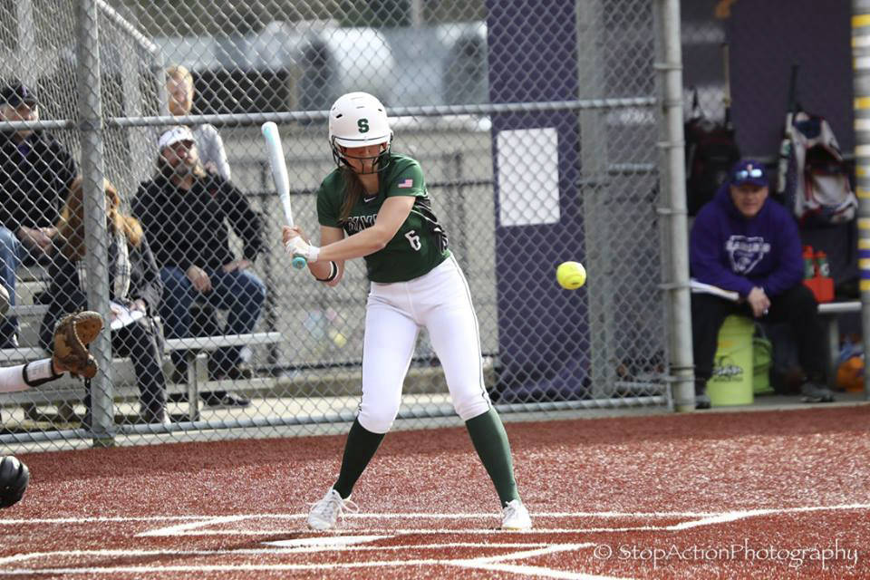 Photo courtesy of Don Borin/Stop Action Photography                                Skyline Spartans softball player Taylor Juenke is at the plate against the Issaquah Eagles in a KingCo 4A contest earlier this season. Juenke will play collegiate softball at Stony Brook University in New York in 2019.