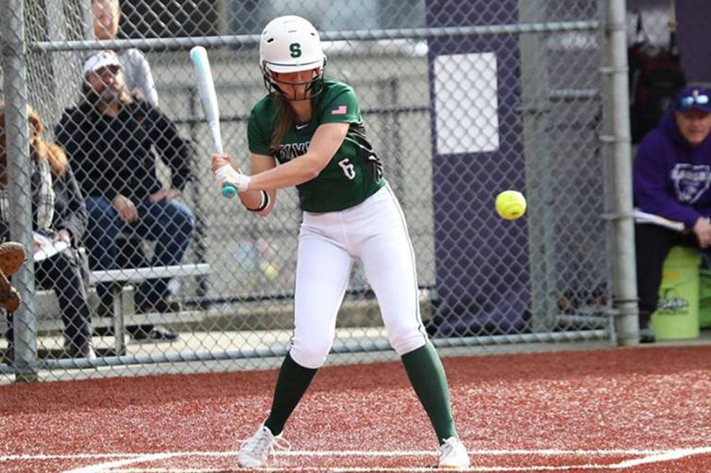 Skyline Spartans softball player Taylor Juenke is at the plate against the Issaquah Eagles in a KingCo 4A contest earlier this season. Juenke will play collegiate softball at Stony Brook University in New York in 2019.