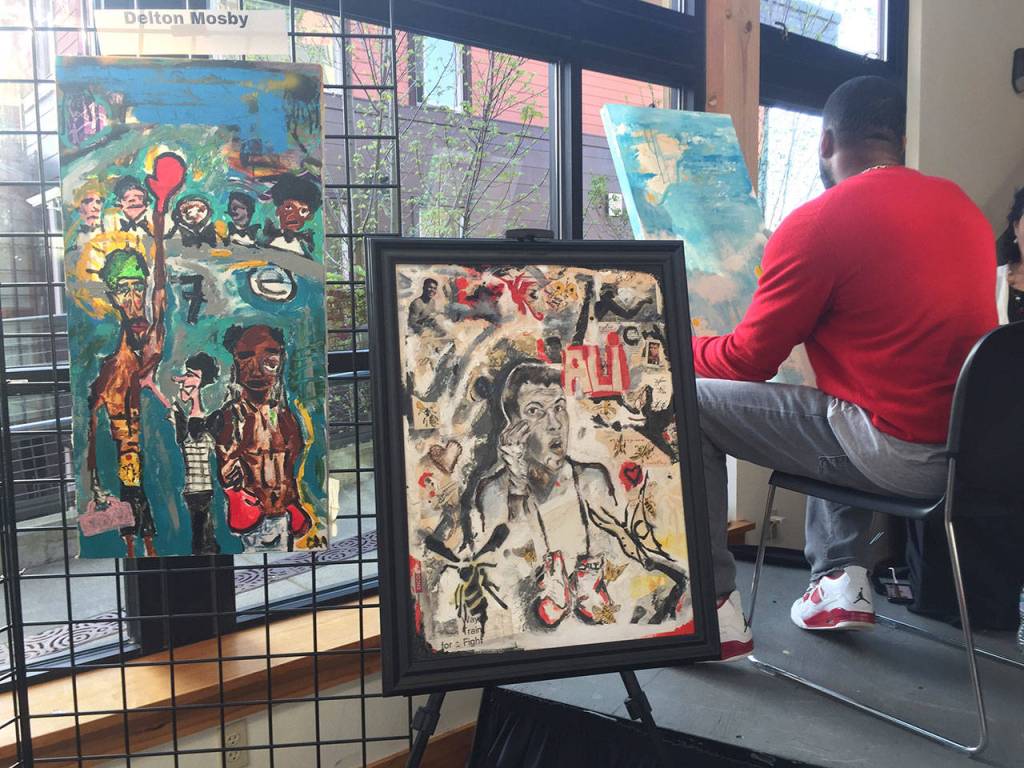 During the discussion, artist Delton Mosby was working on a painting in the same room. He explained that not all his work has an activist motive. According to Mosby, he likes to paint hummingbirds because they don’t have a race.