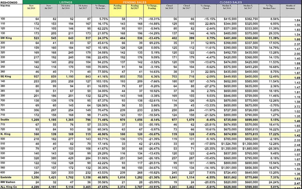 He said the number of single family homes (excluding condos) for sale in King, Pierce and Snohomish counties in July was up 10.4 percent compared to June and up 20.5 percent year-over-year.