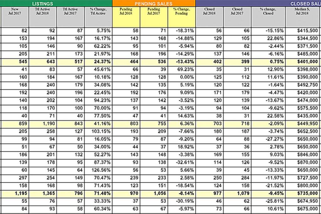 MLS statistics show pending sales declined from 11,800 a year ago to last month’s total of 10,965 for a drop of about 7.1 percent. New listings eclipsed pending sales by a margin of 1,233 units, easing some of the pressure on inventory.