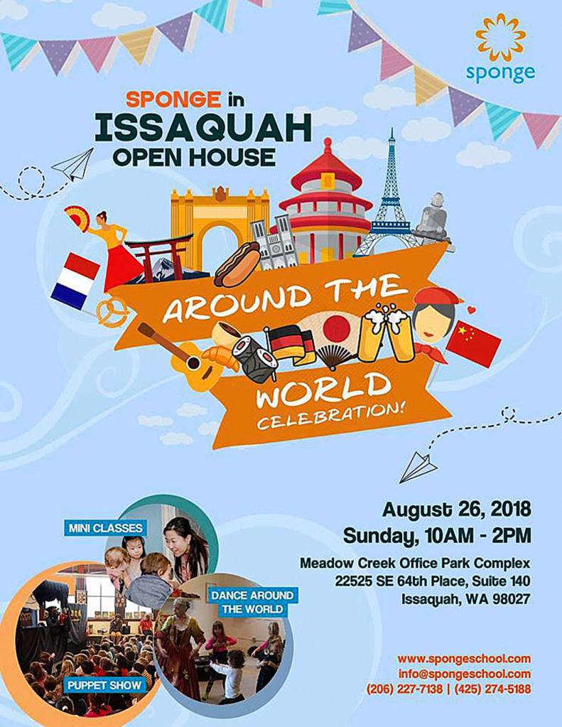Sponge, an award-winning children’s language program, will open a new location in Issaquah. To celebrate the occasion, families are invited to an around-the-world grand opening event on Aug. 26 from 10 a.m. to 2 p.m.