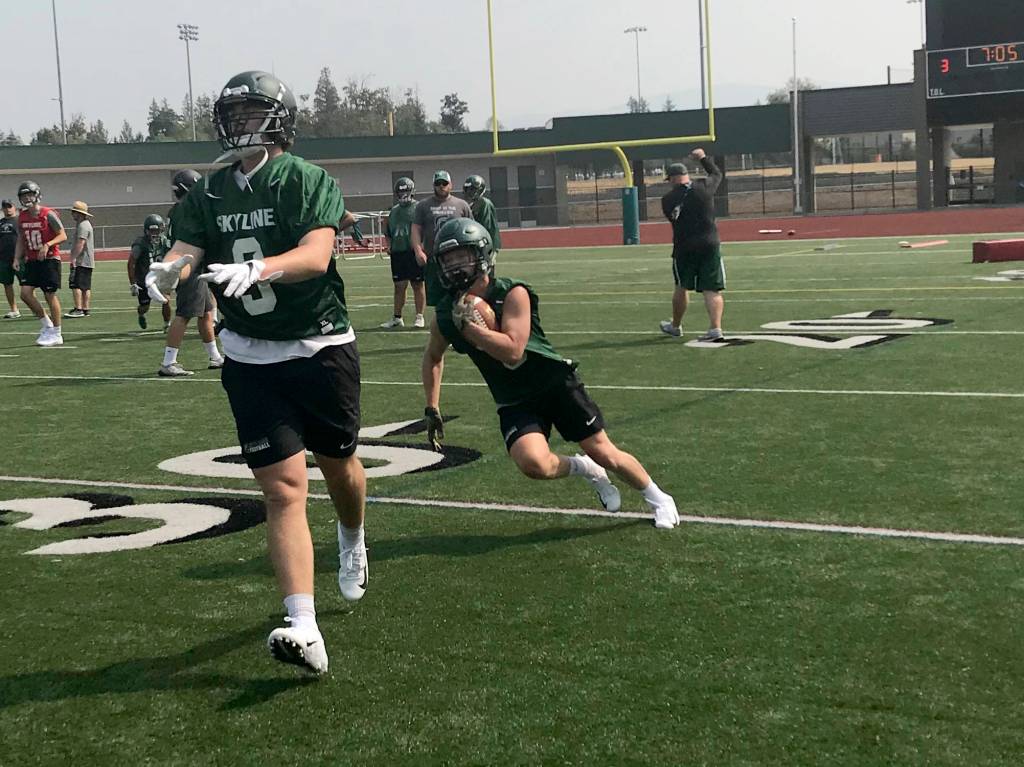 “We’ve had some fantastic receivers here at Skyline over the years but we’ve never quite had someone that has the speed that Dominic (Wieburg) has. He got sixth place in the 100 at 4A (state track meet). I think he was within a tenth of a second of getting first,” Taylor said.